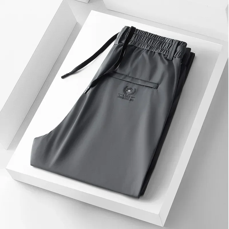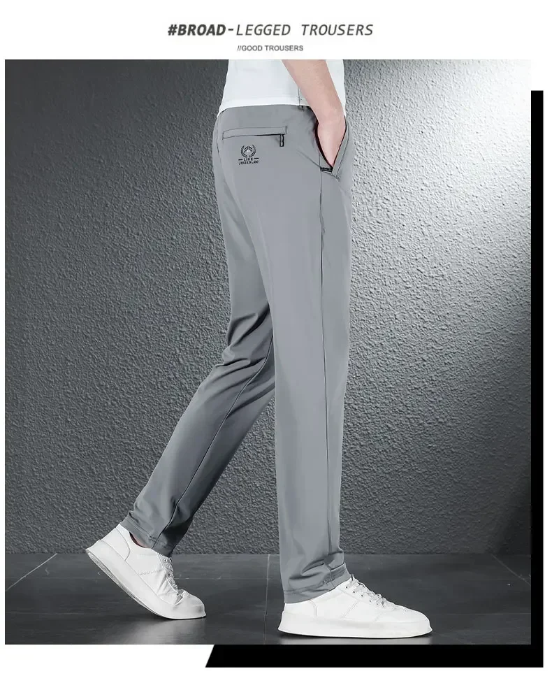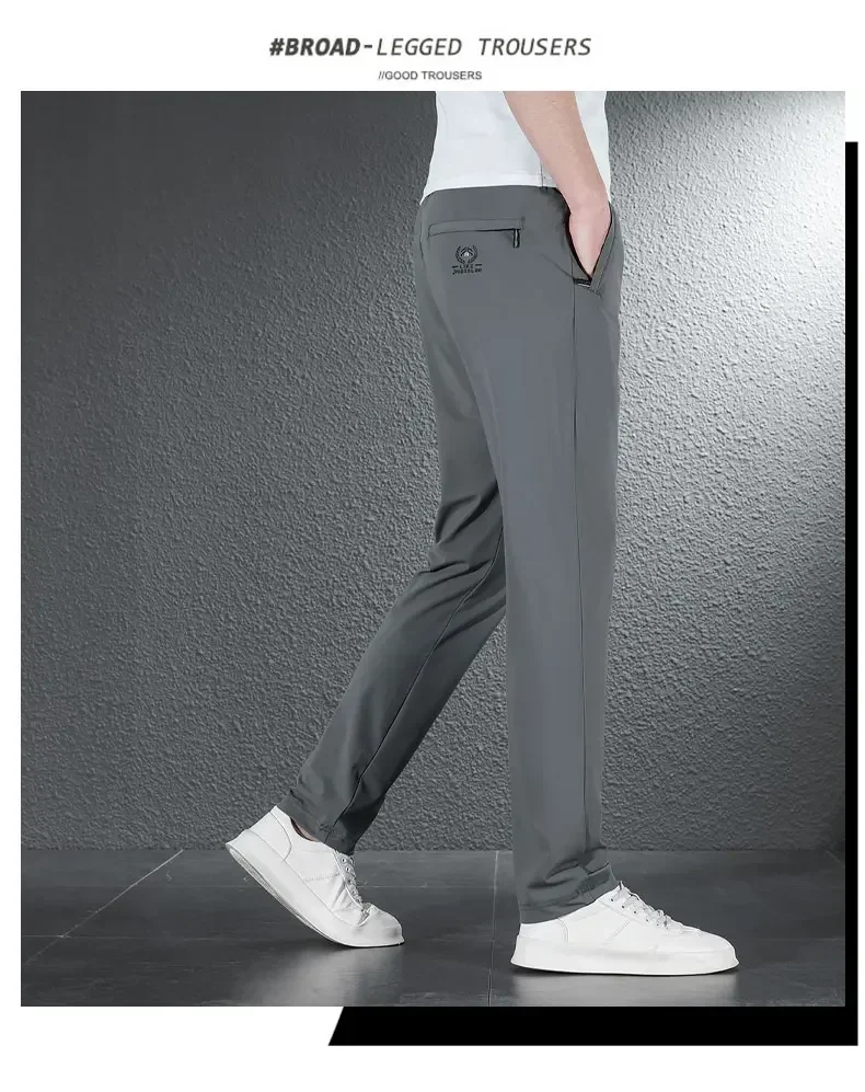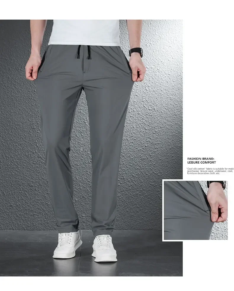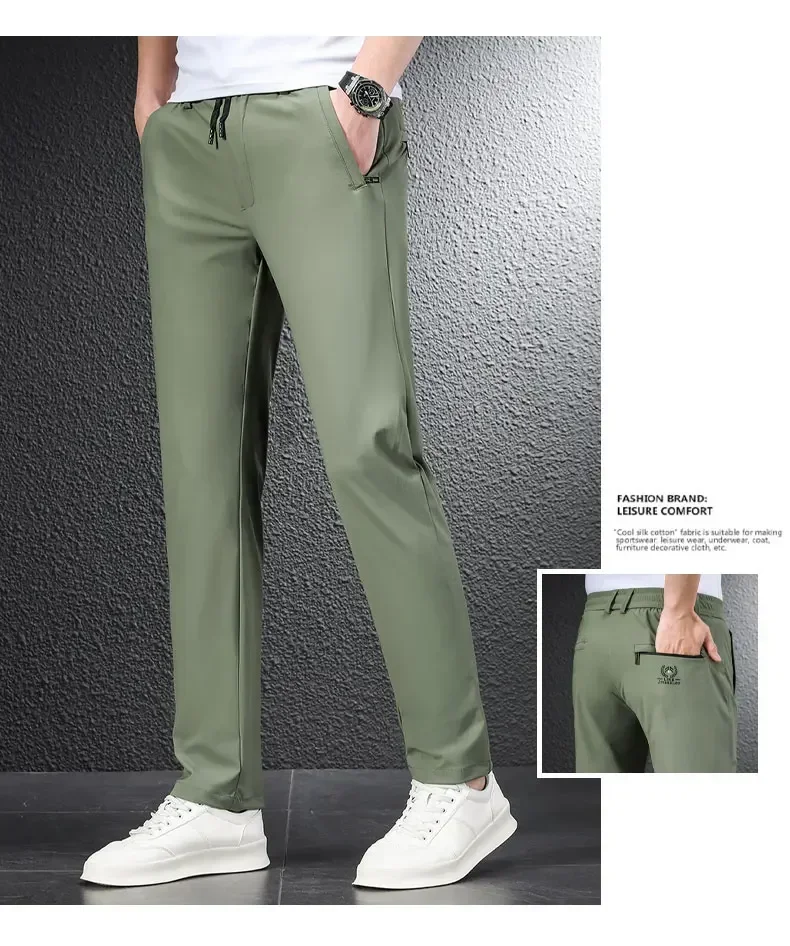 • 2024 Summer Soft Ice Silk Fabric Men’s Thin Casual Pants Korean-style Fashion Straight High Stretch Trousers Male Luxury Brand