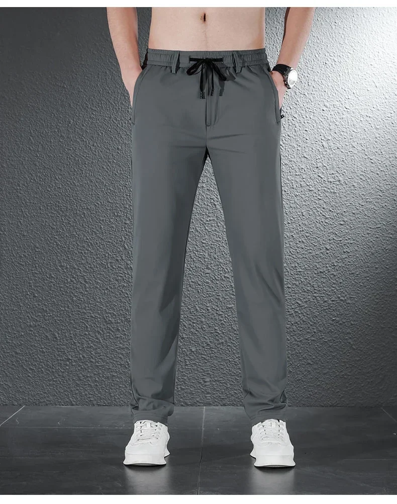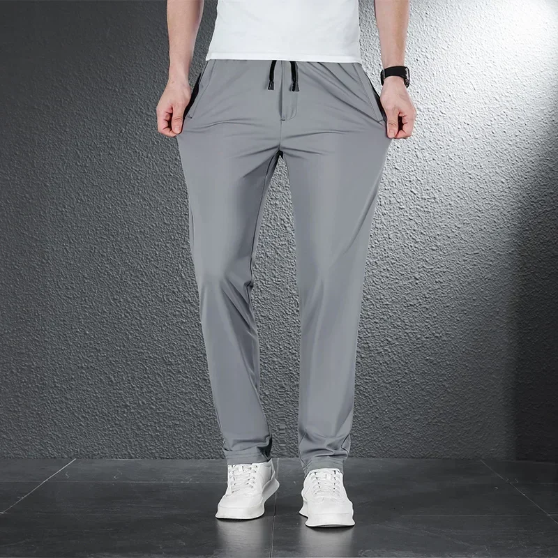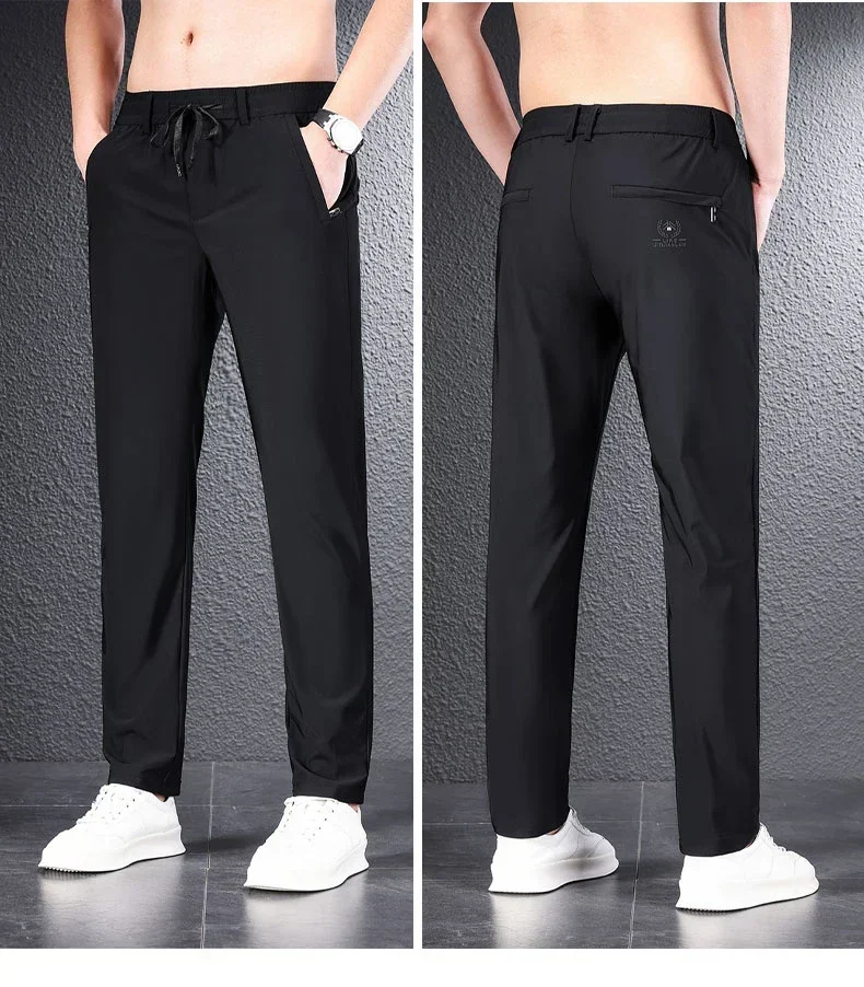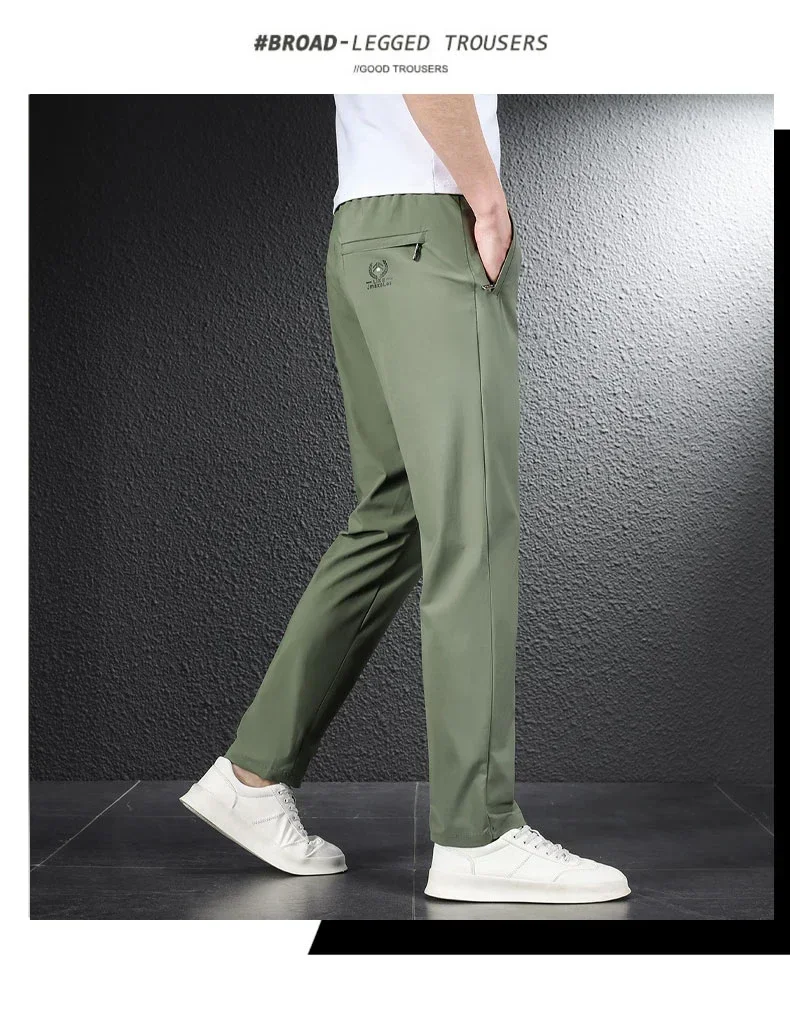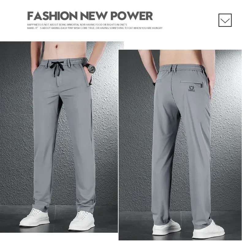 • 2024 Summer Soft Ice Silk Fabric Men’s Thin Casual Pants Korean-style Fashion Straight High Stretch Trousers Male Luxury Brand