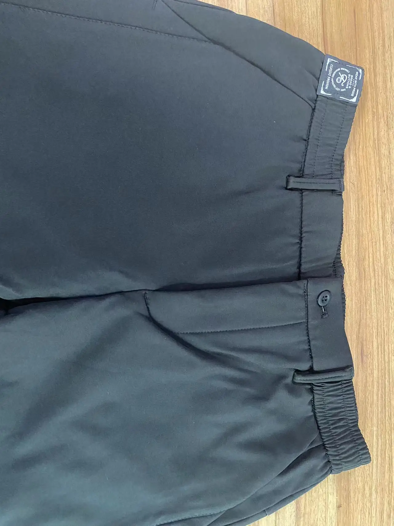 • 2024Winter velvet Casual Pants Men Thick Business Stretch Slim Elastic Waist Jogger Outdoors Korean Classic Fleece Trousers Male