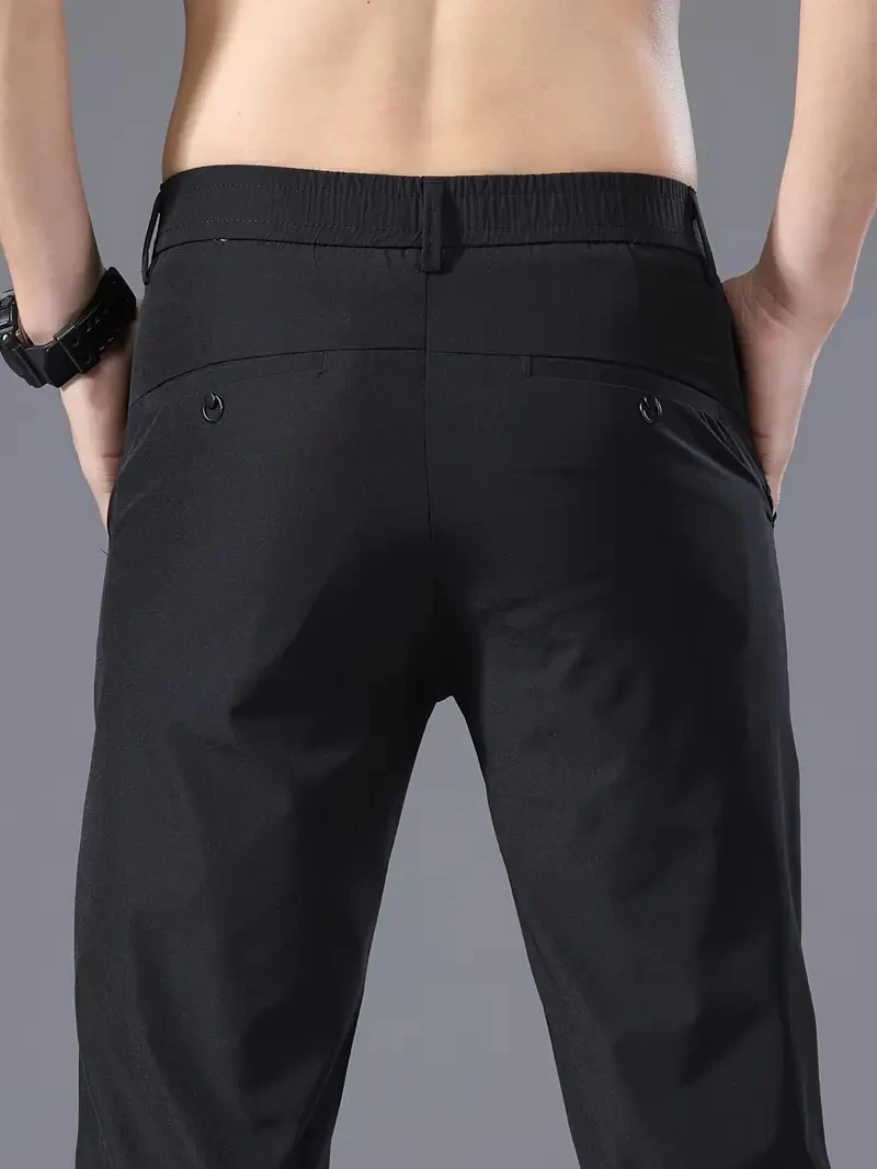 • 2025 Summer Thin Solid breathable Ice Silk Stretch Men’s Pants Casual Elastic Waist Smooth Trouser Pants Male Brand Clothing