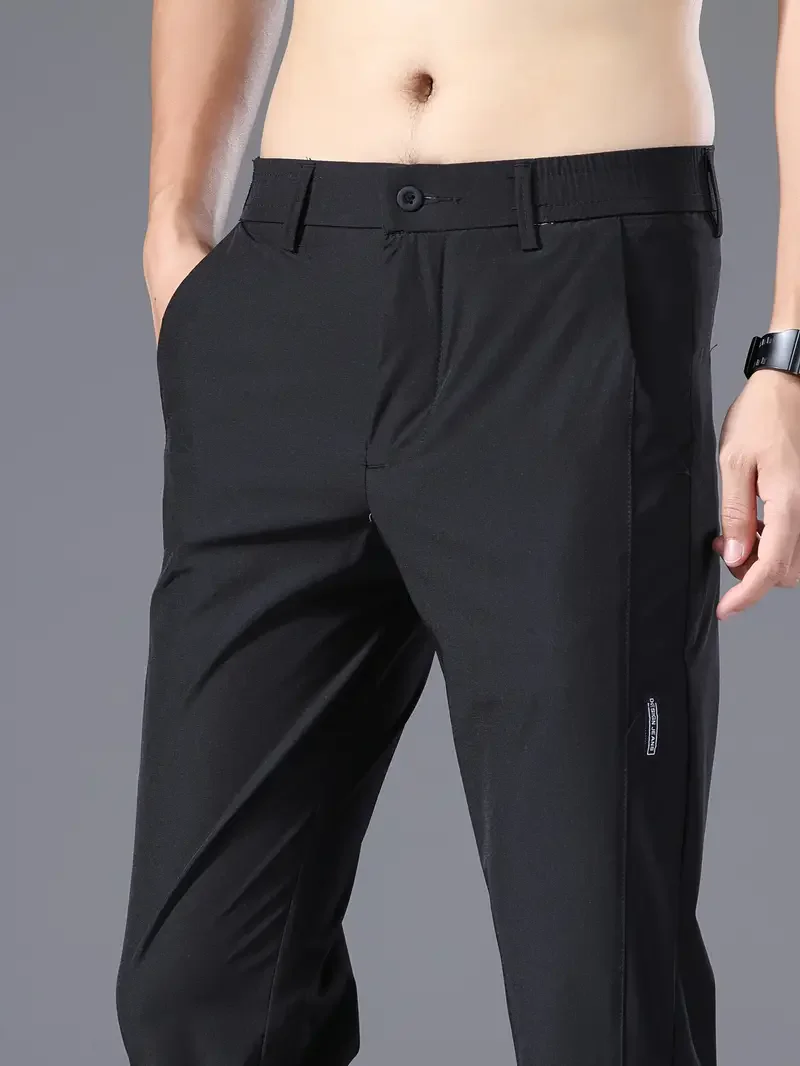 2025 Summer Thin Solid breathable Ice Silk Stretch Men’s Pants Casual Elastic Waist Smooth Trouser Pants Male Brand Clothing