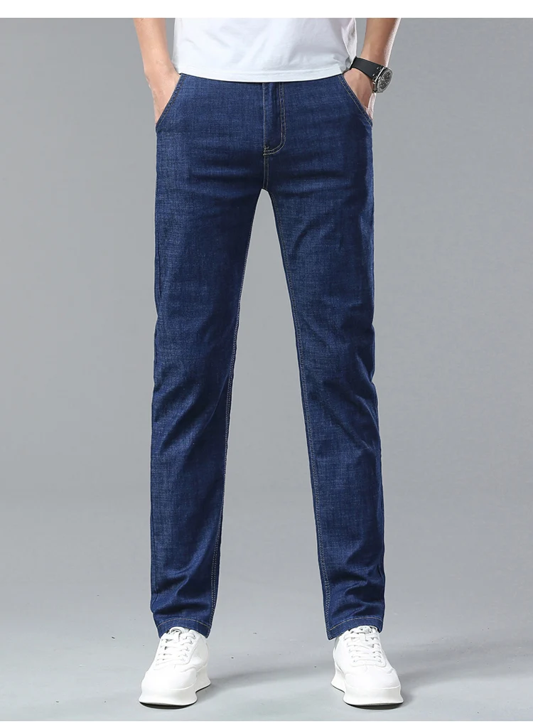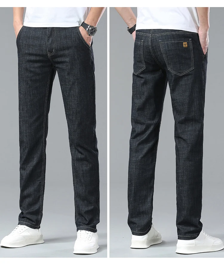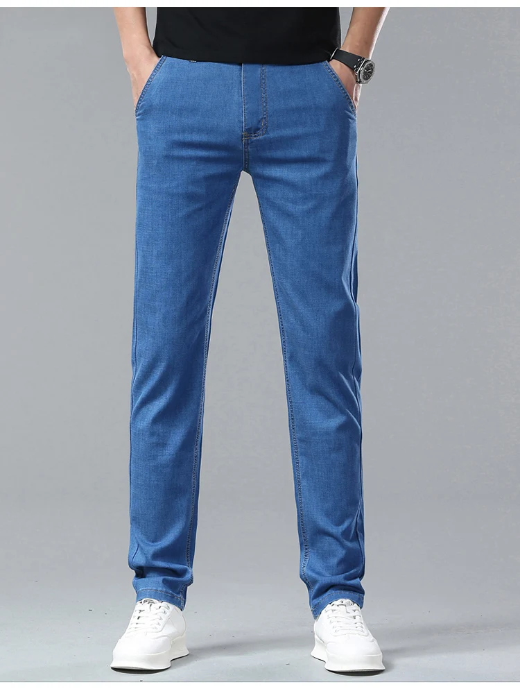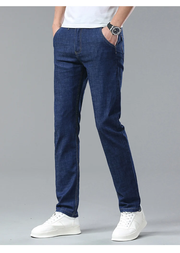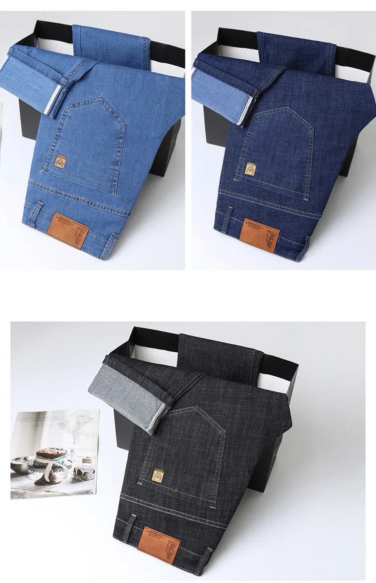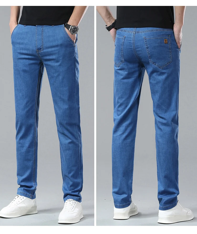 • Light Blue Classic Business Casual Cotton Pants Fashion Breathable Denim Elastic Trousers Brand Men’s Clothing Straight Jeans