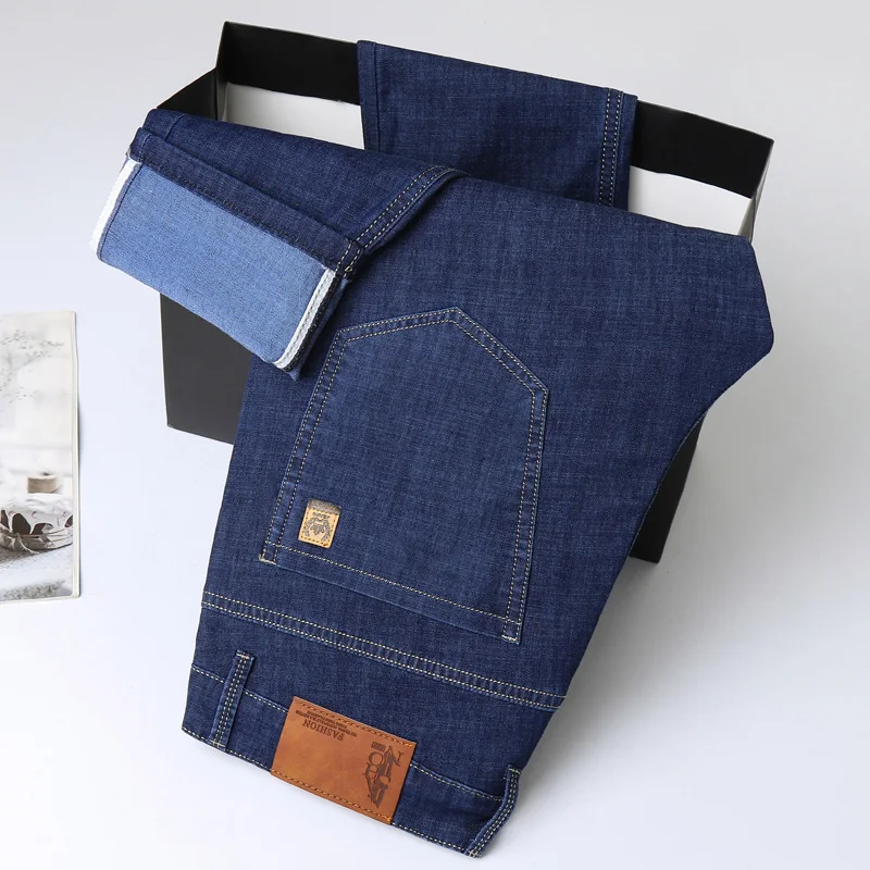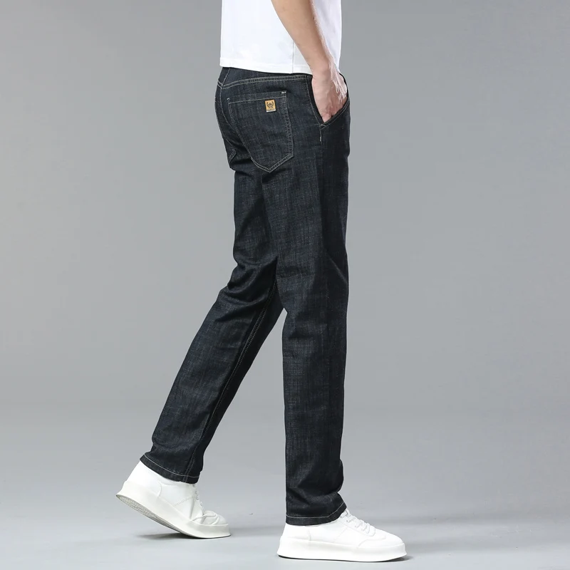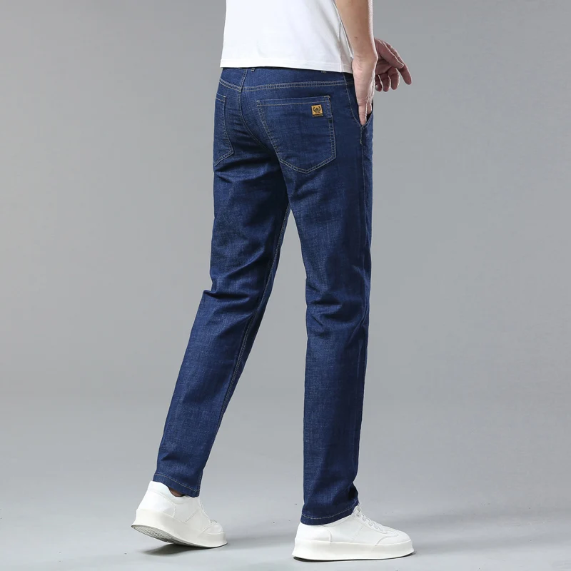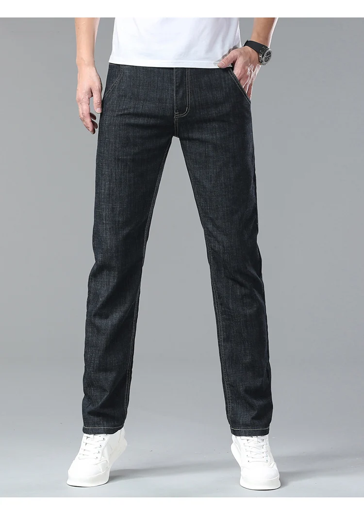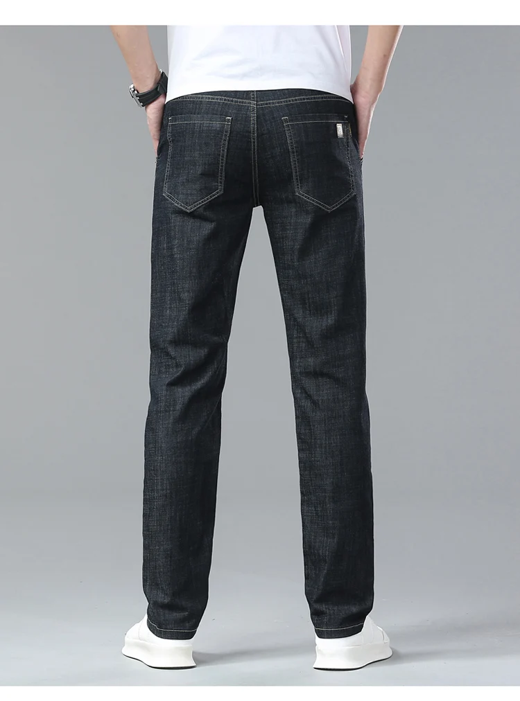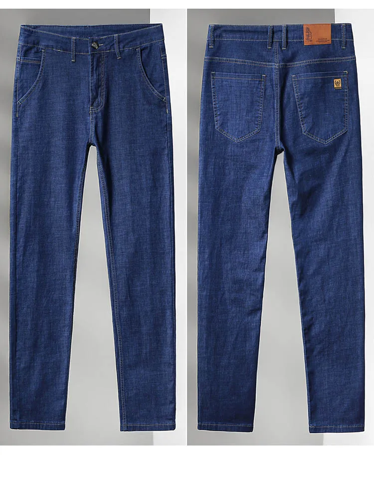 • Light Blue Classic Business Casual Cotton Pants Fashion Breathable Denim Elastic Trousers Brand Men’s Clothing Straight Jeans