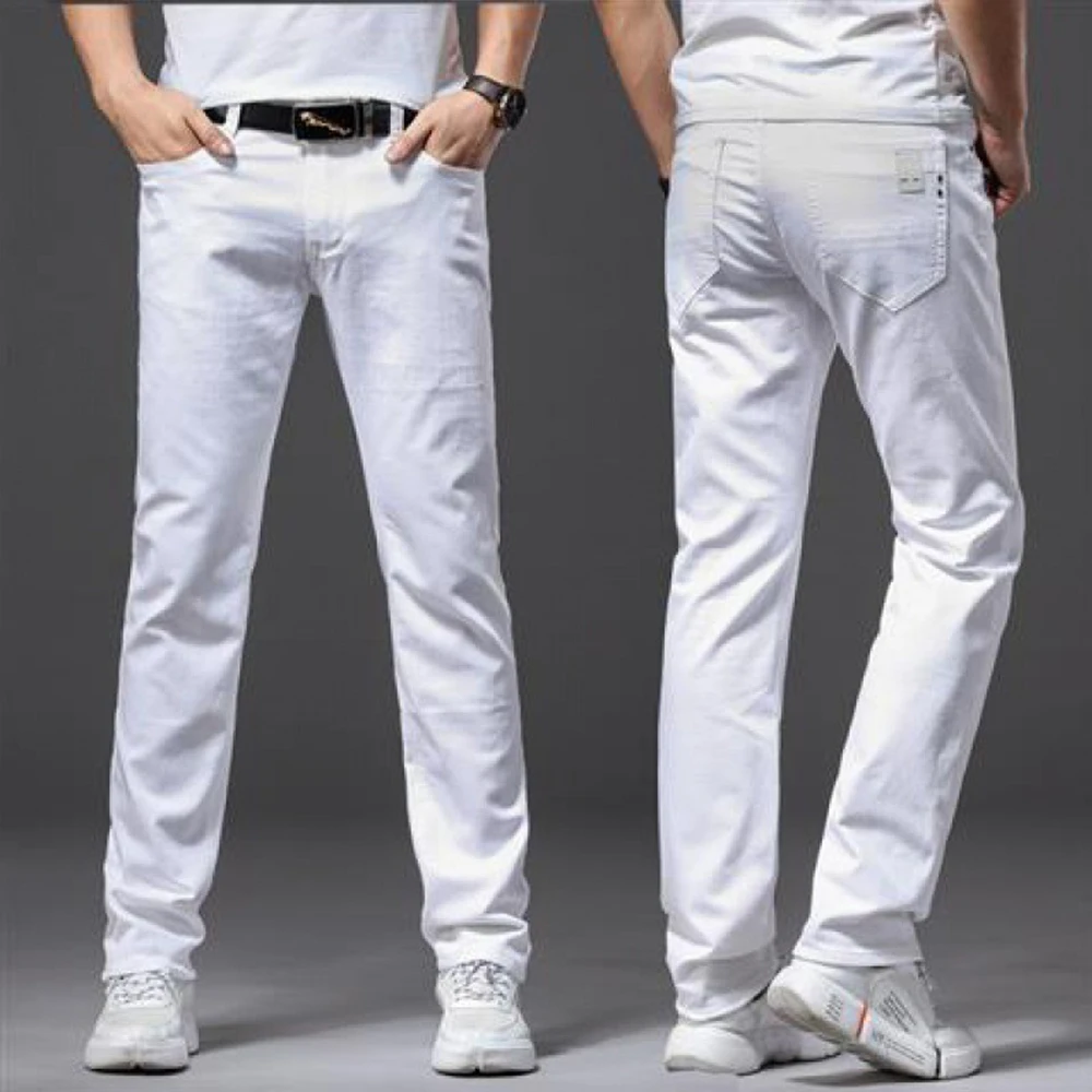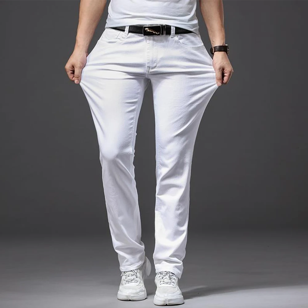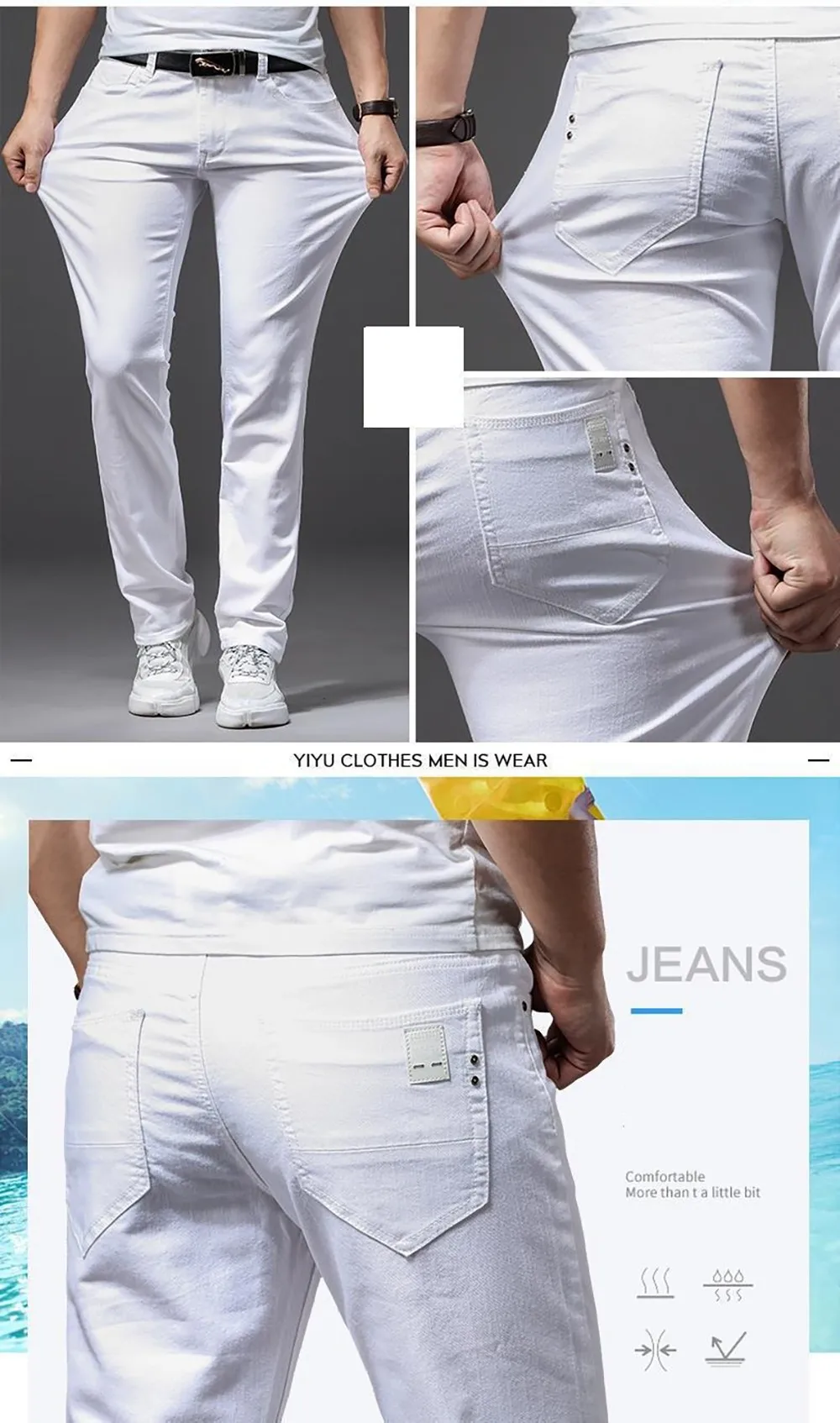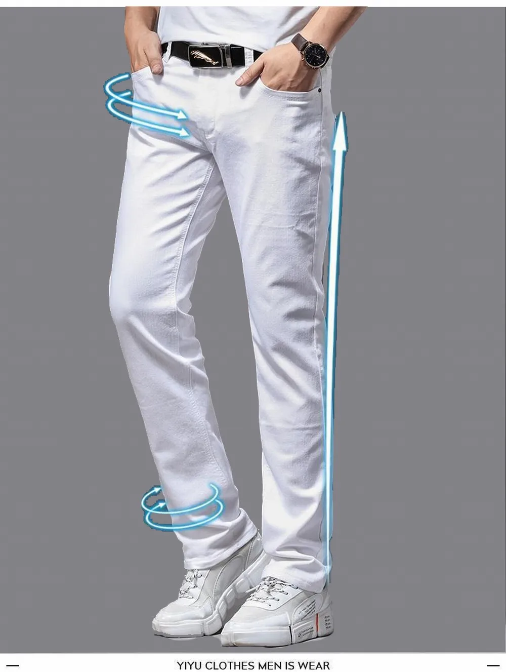 • Men White Jeans Elasticity Straight Slim Fit Casual Soft Business Classic Brand Trousers Fashion Advanced Stretch Denim Pants