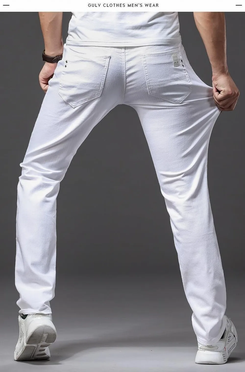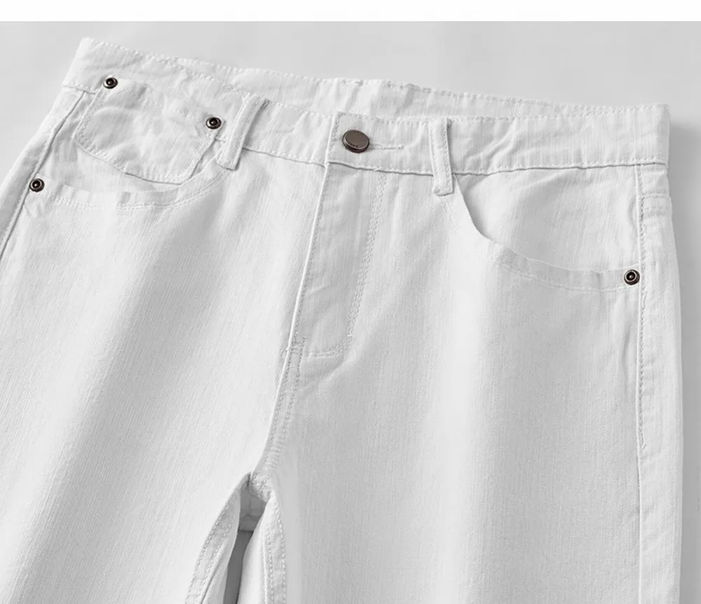 • Men White Jeans Elasticity Straight Slim Fit Casual Soft Business Classic Brand Trousers Fashion Advanced Stretch Denim Pants