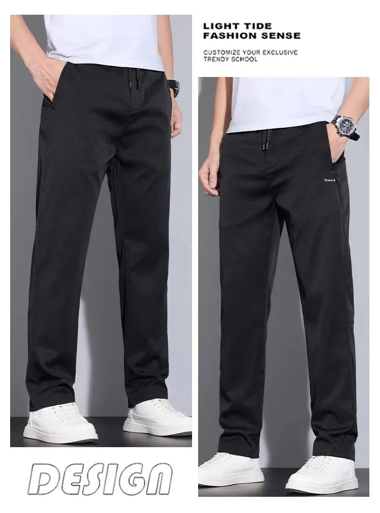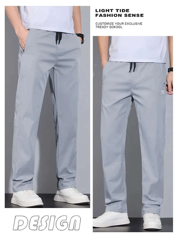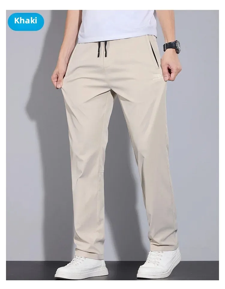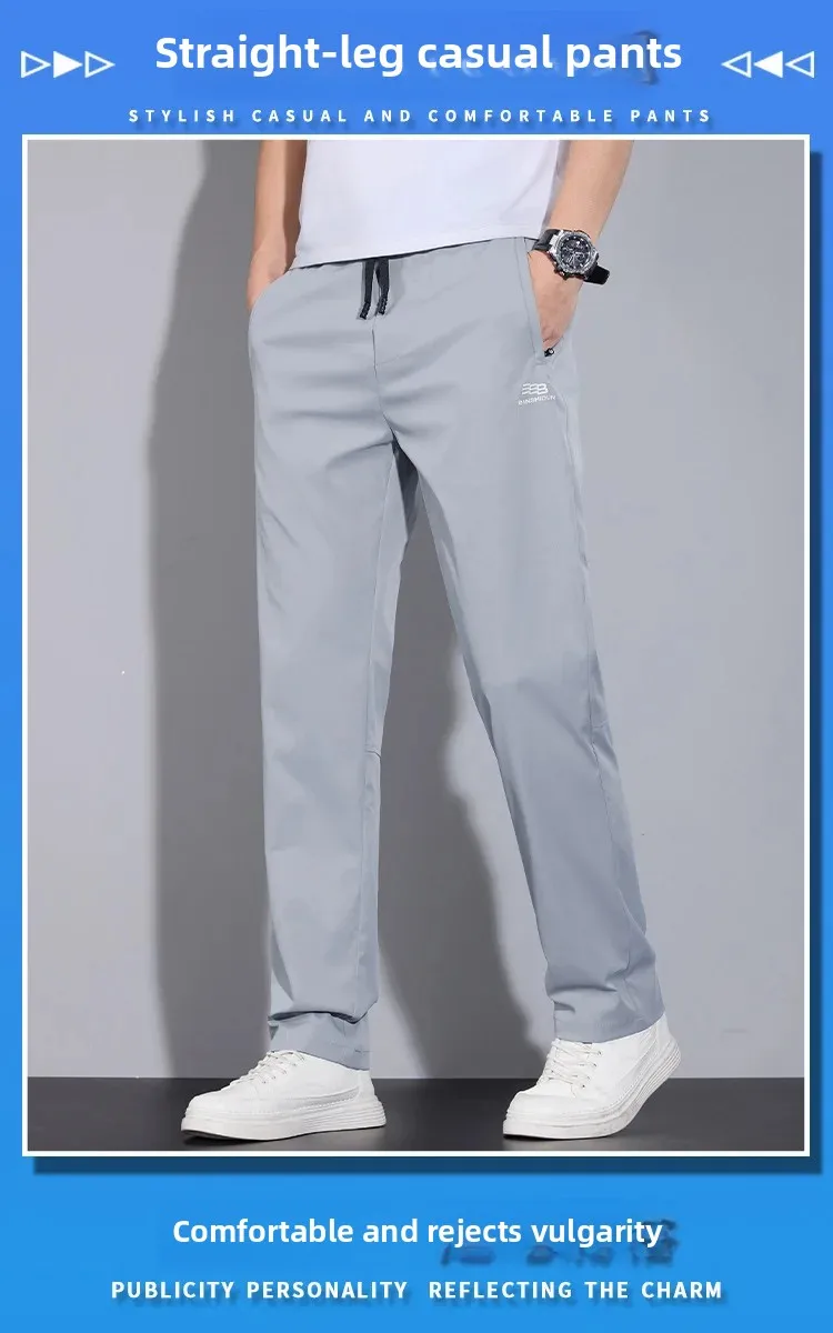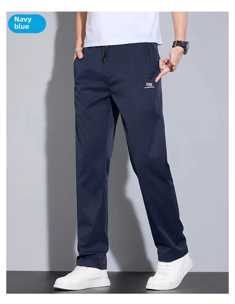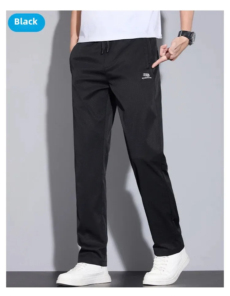 Spring Autumn Men’s Casual Pants Loose Straight Leg Thin Ice Sensation Silk Sport Long Trousers Comfortable Breathable Pant
