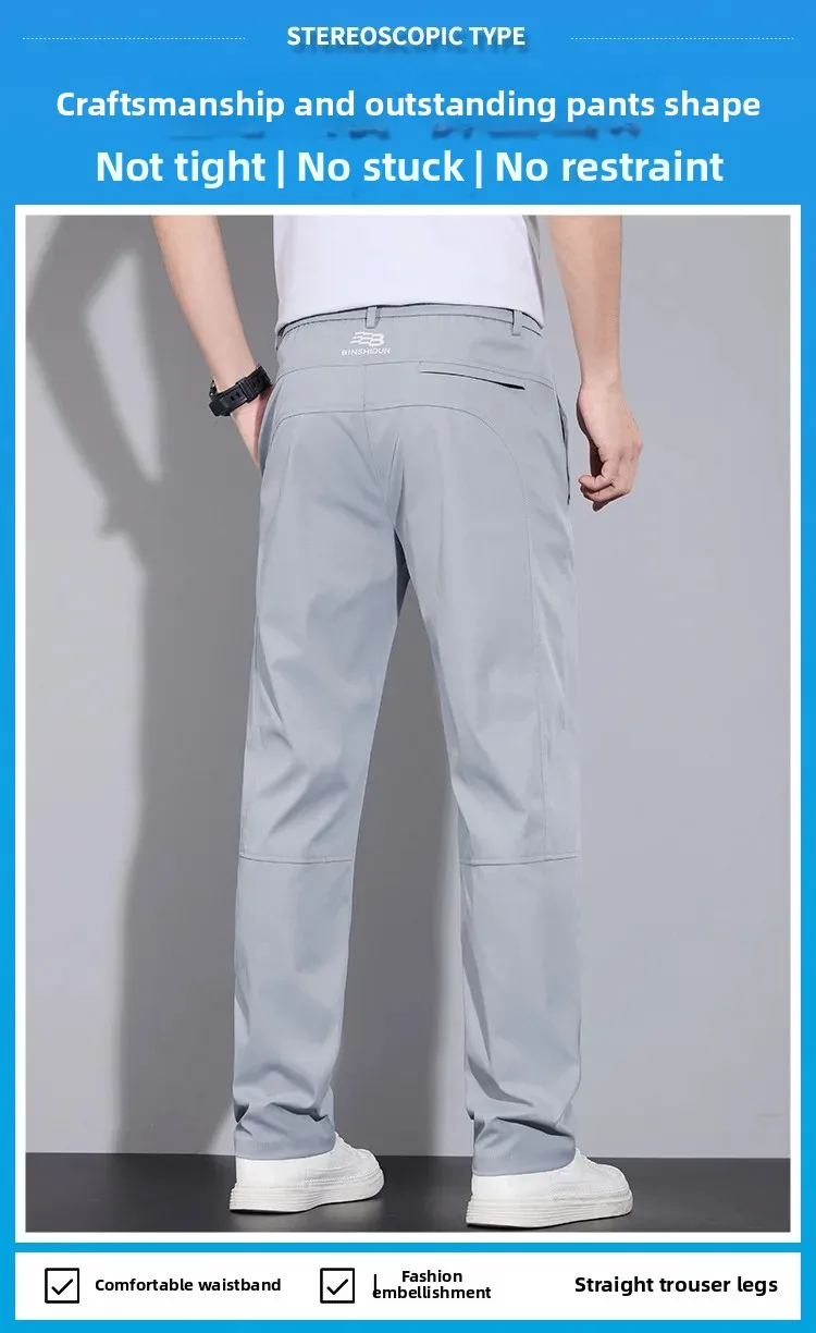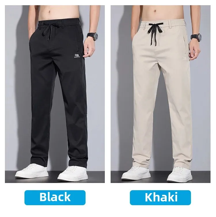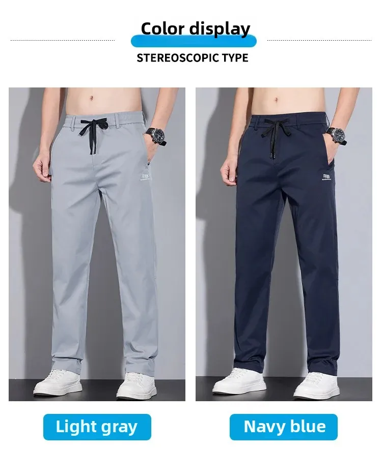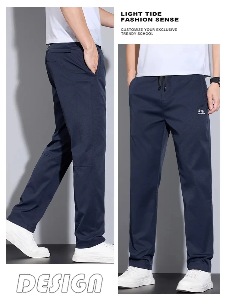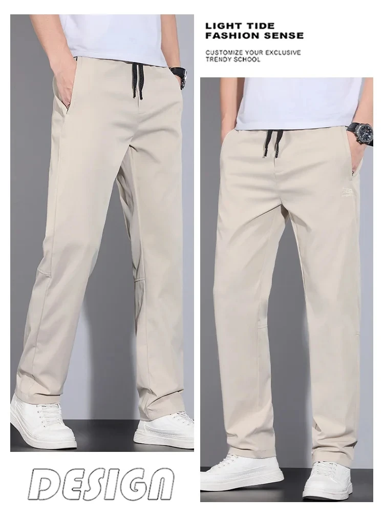 Spring Autumn Men’s Casual Pants Loose Straight Leg Thin Ice Sensation Silk Sport Long Trousers Comfortable Breathable Pant