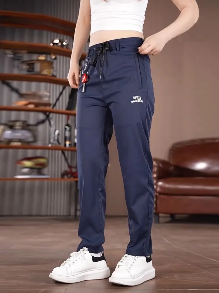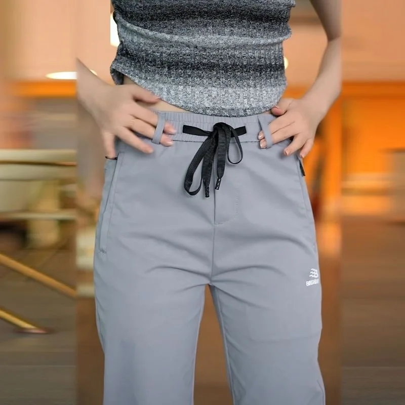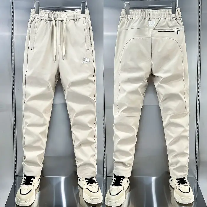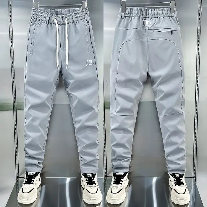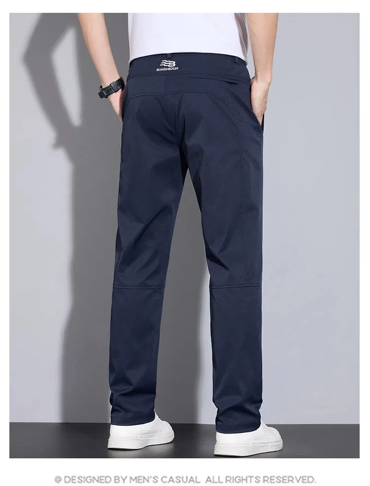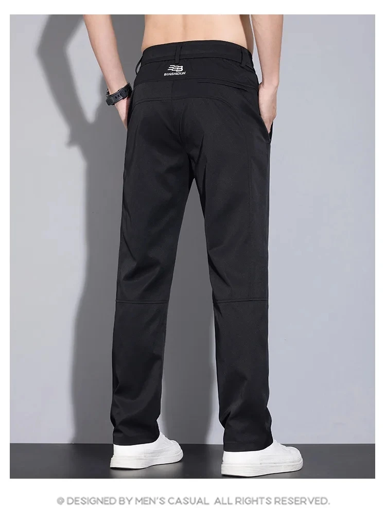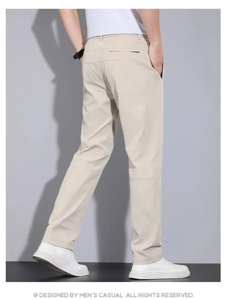 Spring Autumn Men’s Casual Pants Loose Straight Leg Thin Ice Sensation Silk Sport Long Trousers Comfortable Breathable Pant