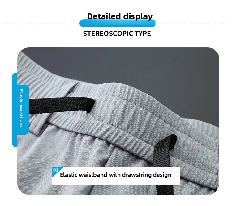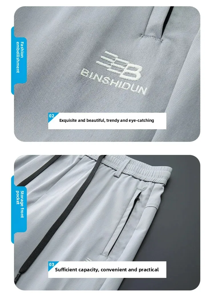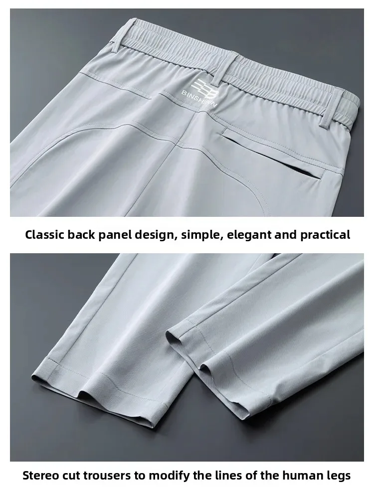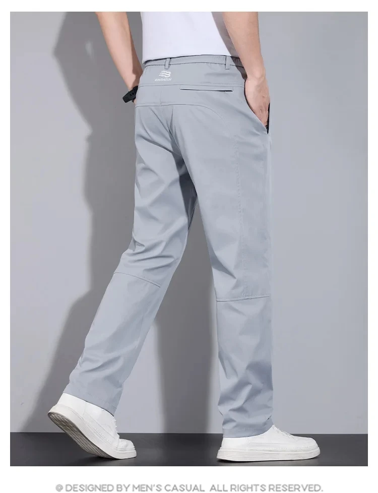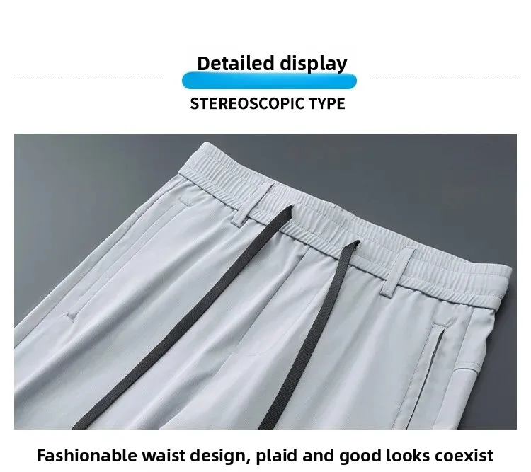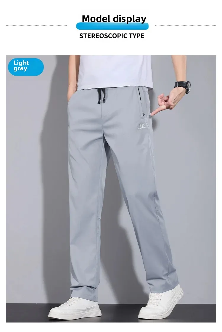 • Spring Autumn Men’s Casual Pants Loose Straight Leg Thin Ice Sensation Silk Sport Long Trousers Comfortable Breathable Pant