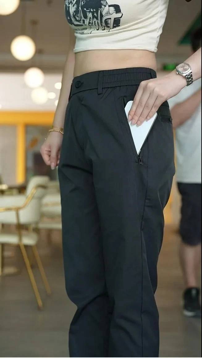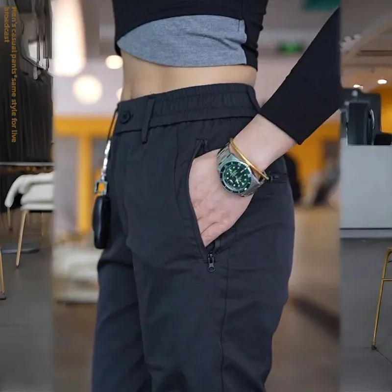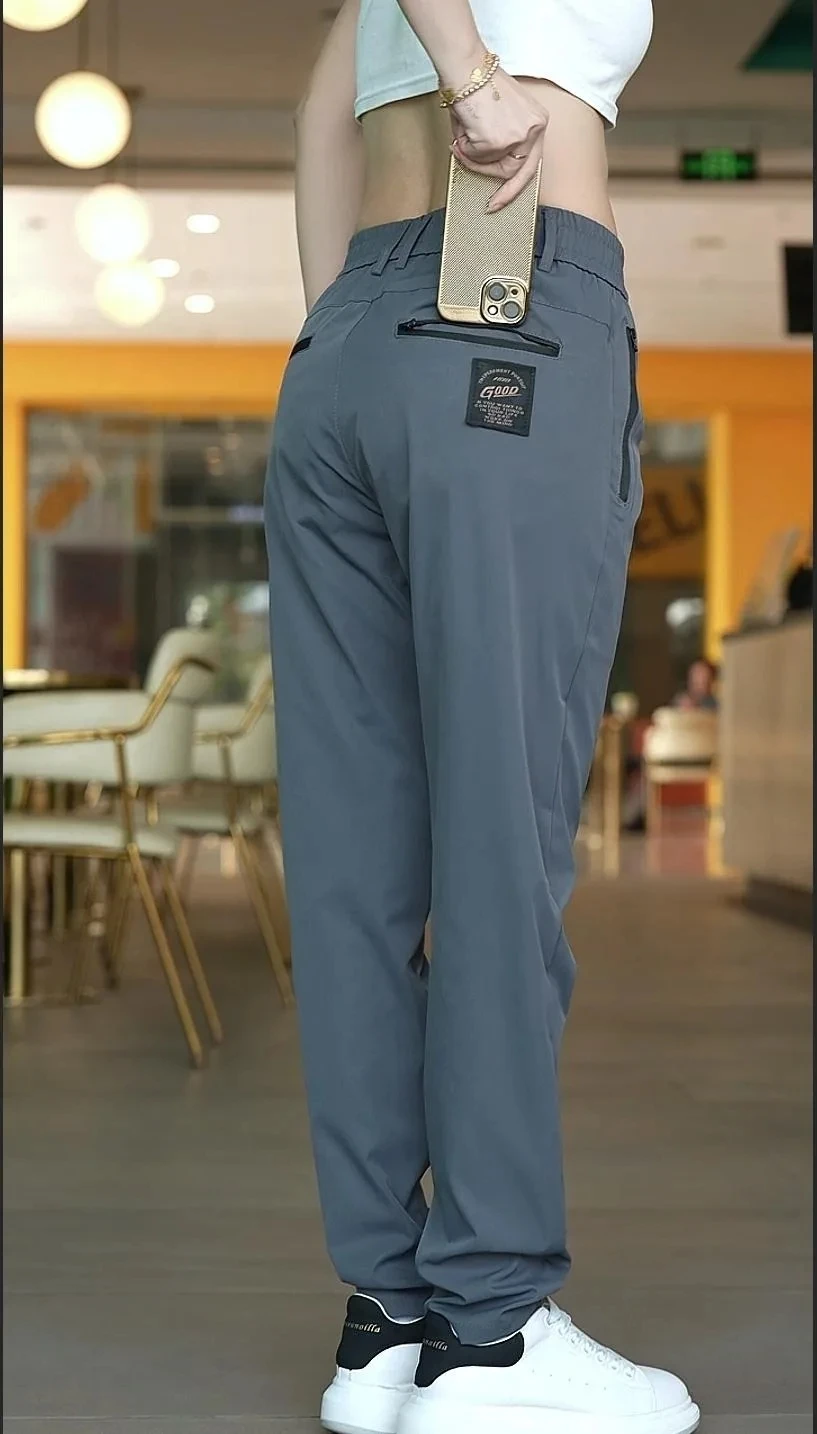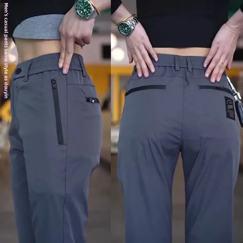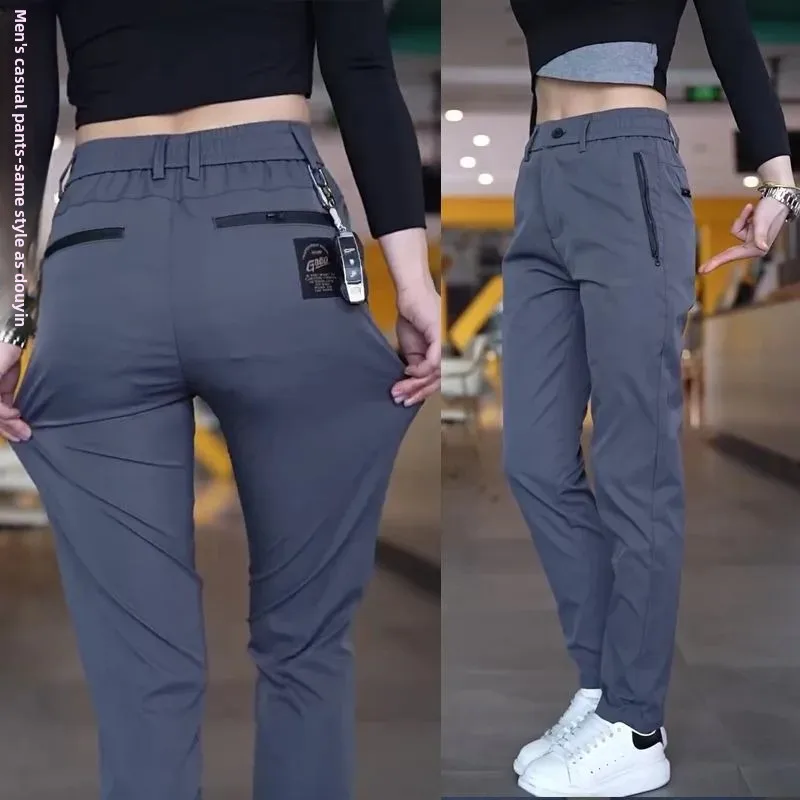 • Summer Silk Stretch Smooth Trousers Men Business Elastic Waist Korean Classic Thin Cool Black Gray Casual Suit Pants Male Brand