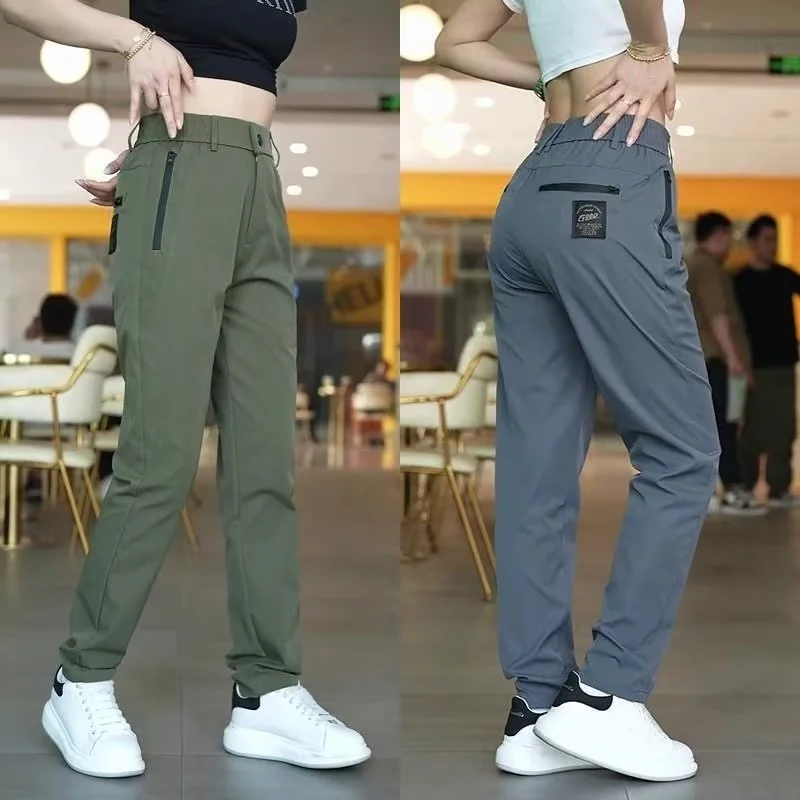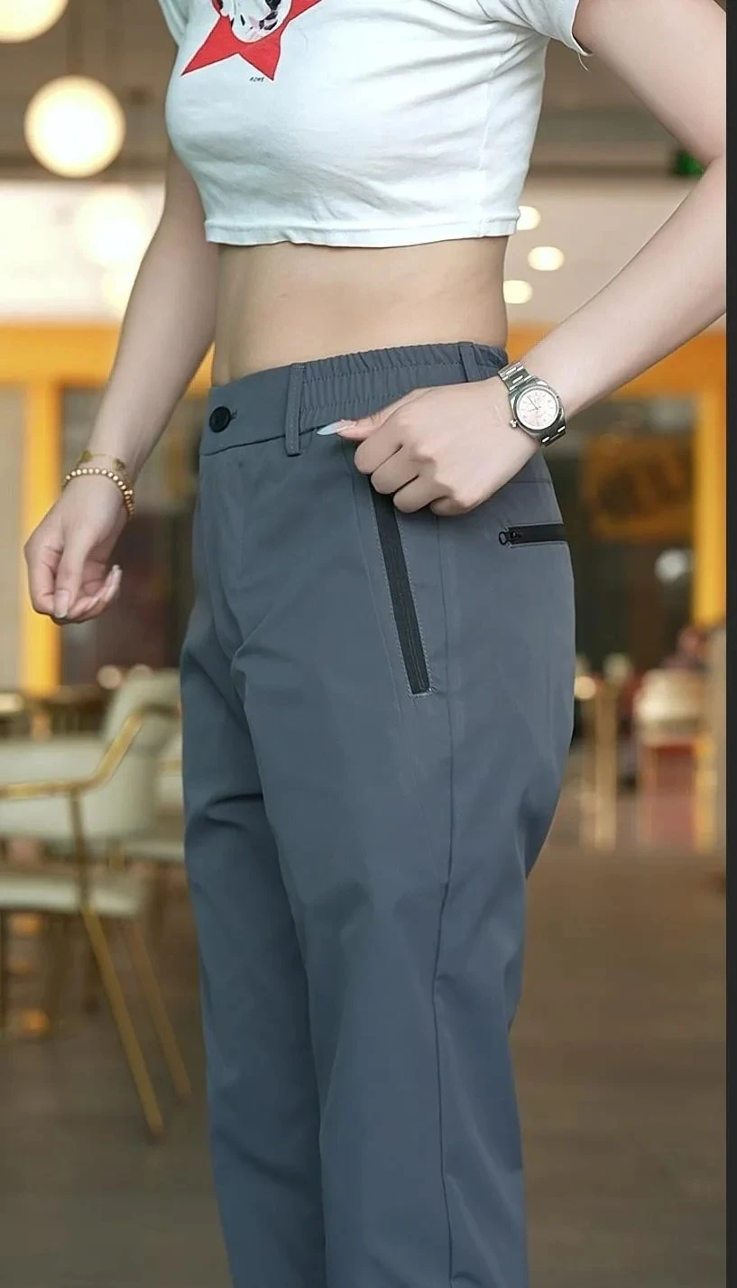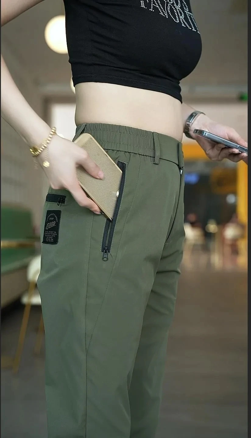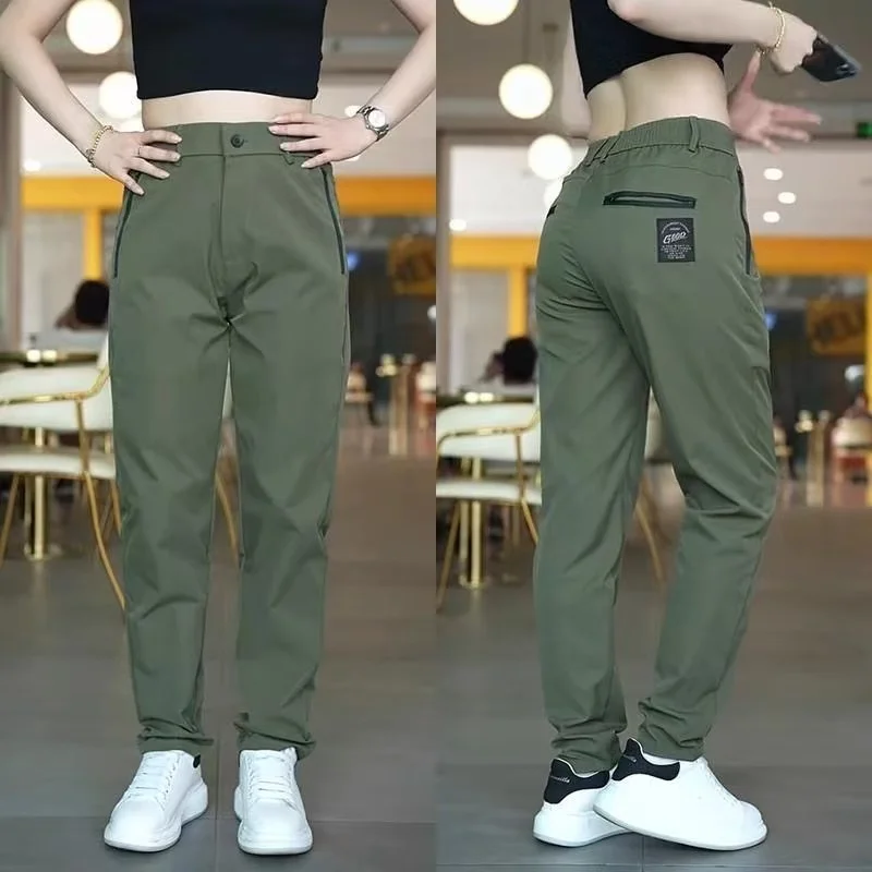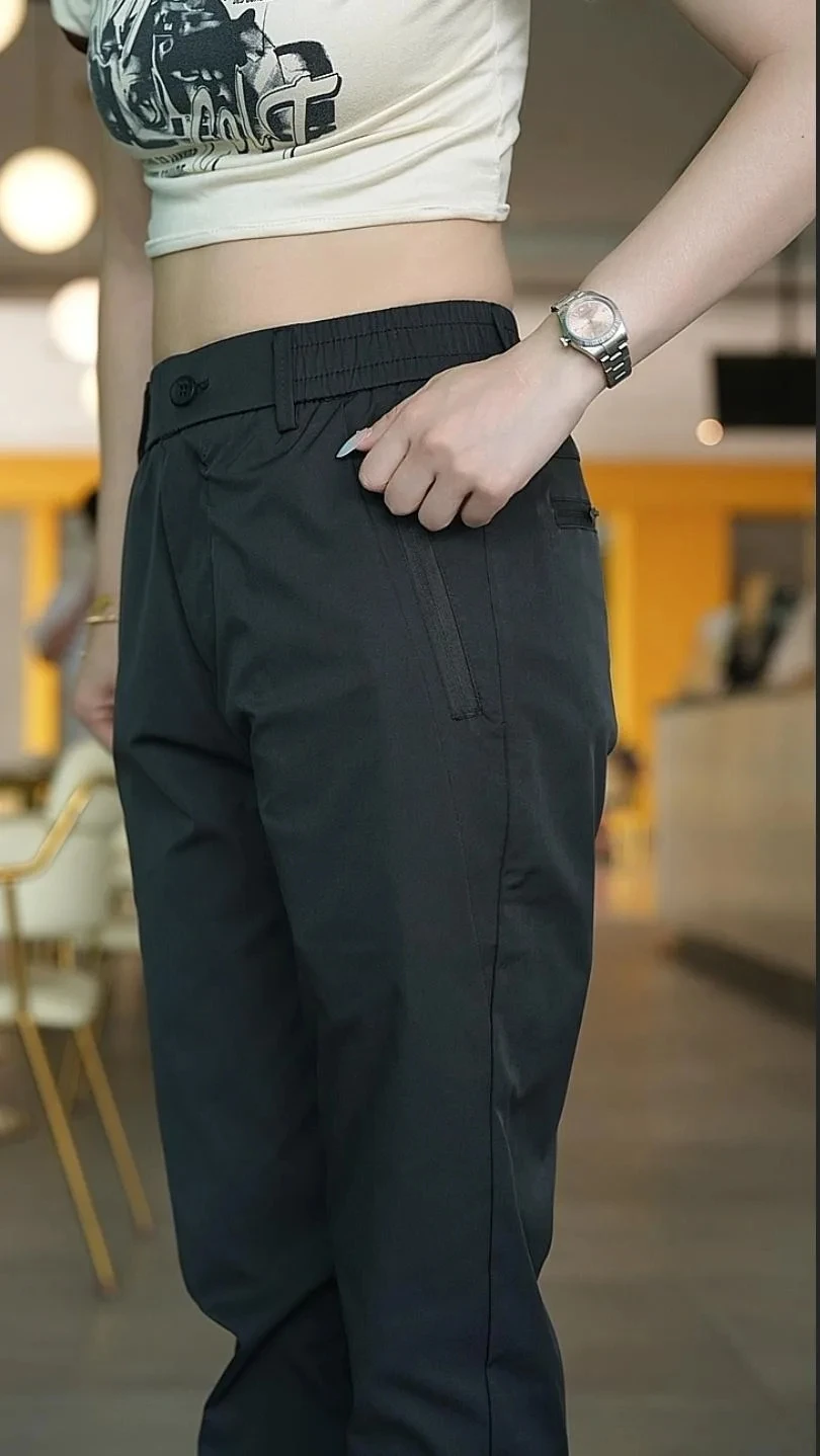 • Summer Silk Stretch Smooth Trousers Men Business Elastic Waist Korean Classic Thin Cool Black Gray Casual Suit Pants Male Brand